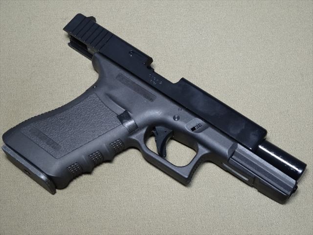 全体の印象は初めて見たときは東京マルイのグロックより金属っぽく見えました。あるいは少々荒削りなところがそう見せているのかも知れませんがどちらも大きな差は感じられません。