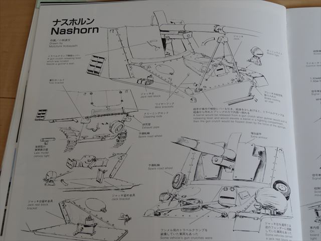 これは大日本絵画から出版されている資料集です。未公開のまま博物館の倉庫に眠るドイツ軍自走砲5種と、ナースホルンの細部写真集という内容です。ナースホルンについては白黒写真とイラストが収録されています。私はドラゴンの初代ナースホルンを制作する際に購入したので、かれこれ20年前に購入したことになります。