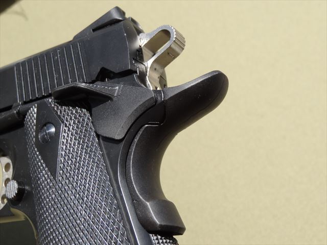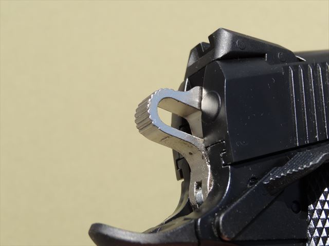 ビーバーテイルのグリップセーフティ。動きは軽いですね。もう少し重々しい動きが欲しいところ。