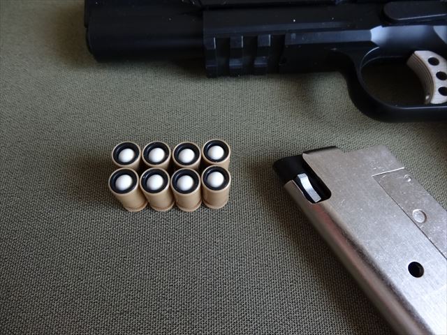 プラ製のカートリッジ。24発(3マガジン分)が付属しています。