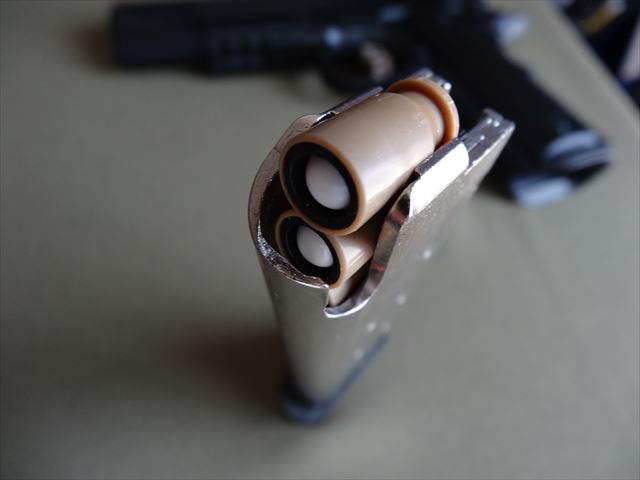 シングルカラムマガジンですのでこのように一列に装填されます。