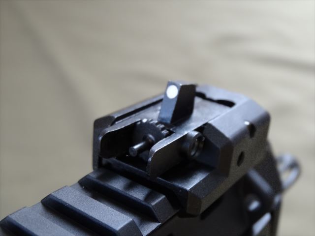フロントサイトも同様に可倒式です。こちらは上下に調整出来ます。