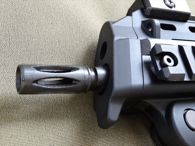 フラッシュハイダーを外して、同梱のマズルアダプタを取り付けます。