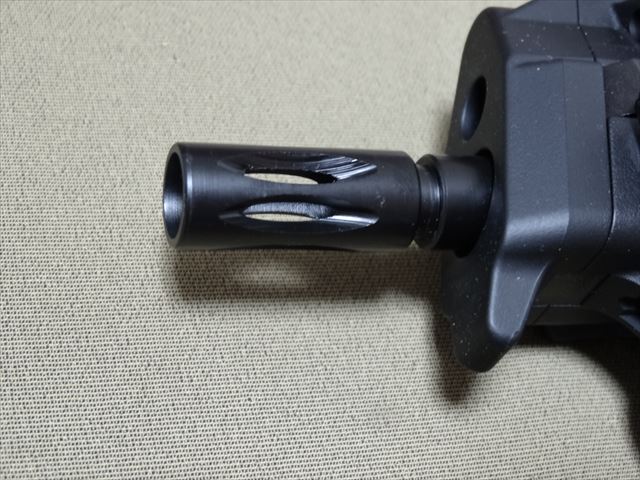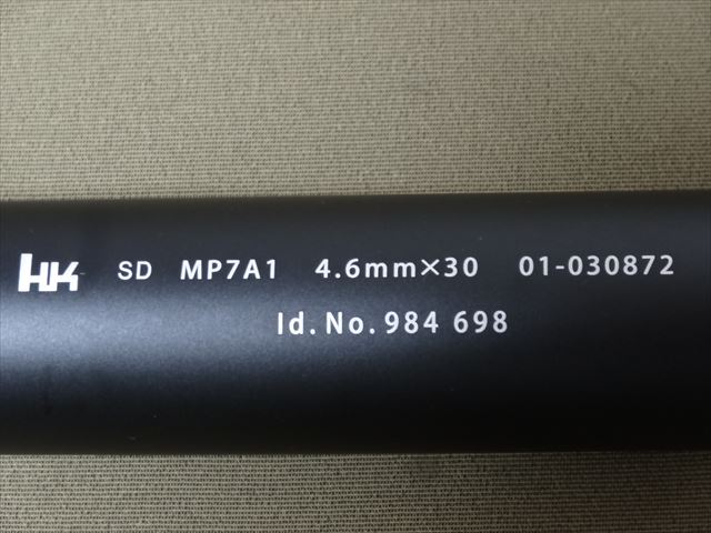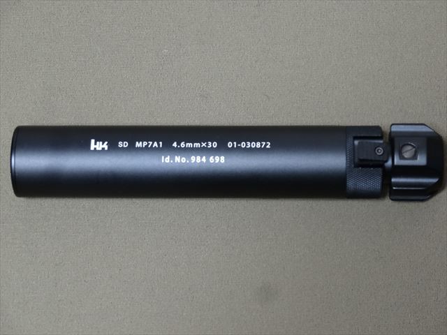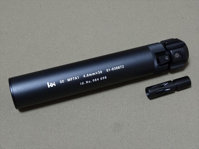 メーカー不詳ですが 東京マルイGBB/AEG MP7完全対応!! H&K刻印 MP7A1専用 QDサプレッサーレプリカ (専用スチールハイダー付)(MP7-silencer)というものです。