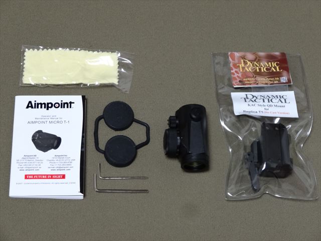ダットサイト本体の他にハイマウントとラバーのレンズカバー、六角レンチ、レンズ拭き、説明書が同梱されています。