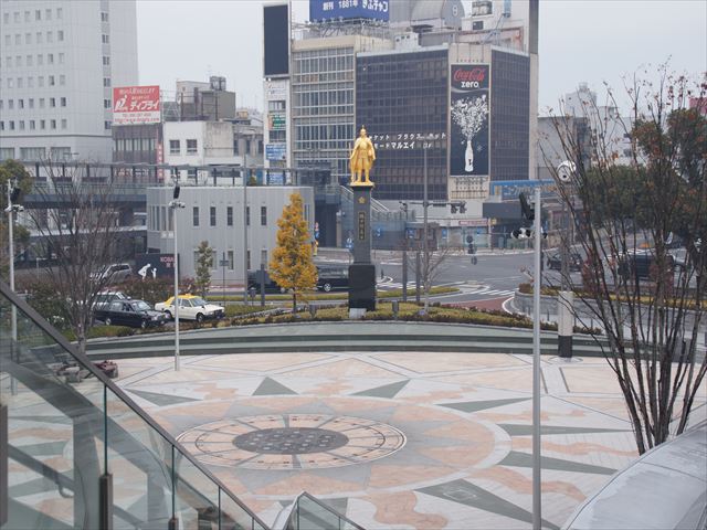 まずJR岐阜駅からバスで岐阜公園歴史博物館前まで行くことになりますのでJR岐阜駅前のバス停に移動します。JR岐阜駅前にはなんと黄金の織田信長公像が!!