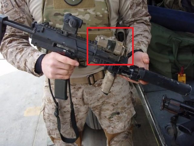 MP7A1に取り付けたところ。PEQ15にはライトの機能はないバッテリーケースもあり、こちらを選べば安上がりにカスタム出来ます。私は機能も欲しかったのでライトもレーザーも点灯するモデルを選びました。カスタム完成までもう少し。