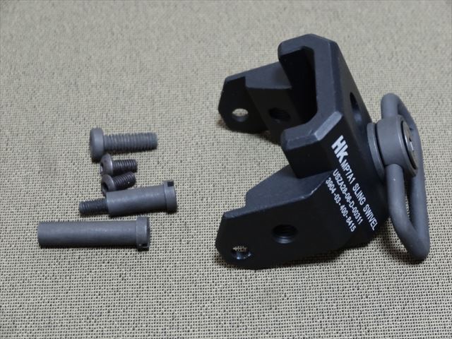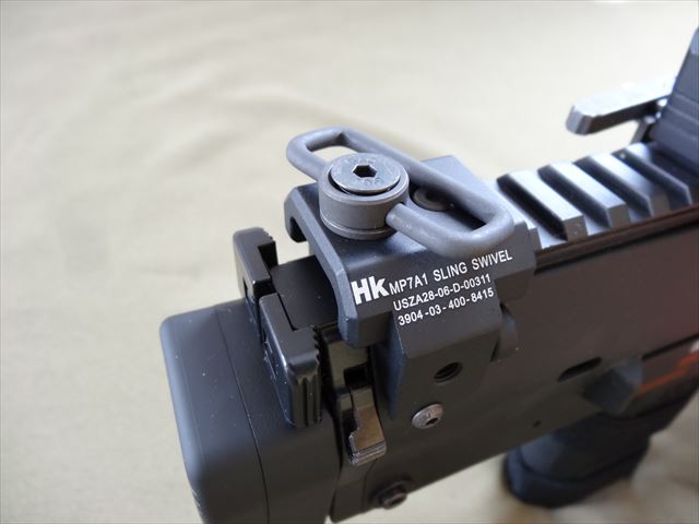 MS2は2ポイントでも1ポイントでも使えるのですが、MP7A1には1ポイントで使うのでこのように片方の金具を途中の輪に引っかけます。