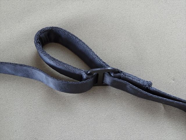 スリングの途中にこんな輪っかがありました。最初は縫製を間違ったのかと思いましたが、調べてみるとこの輪っか(グリップ)を握って引っ張るとスリングの長さを調整出来るという物です。