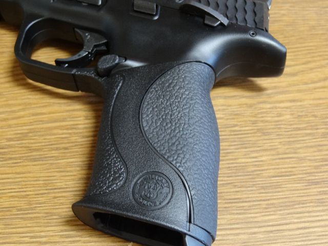 こちらがLサイズです。サムレストにかかるところまであります。Lサイズでも握りづらいということはありません。