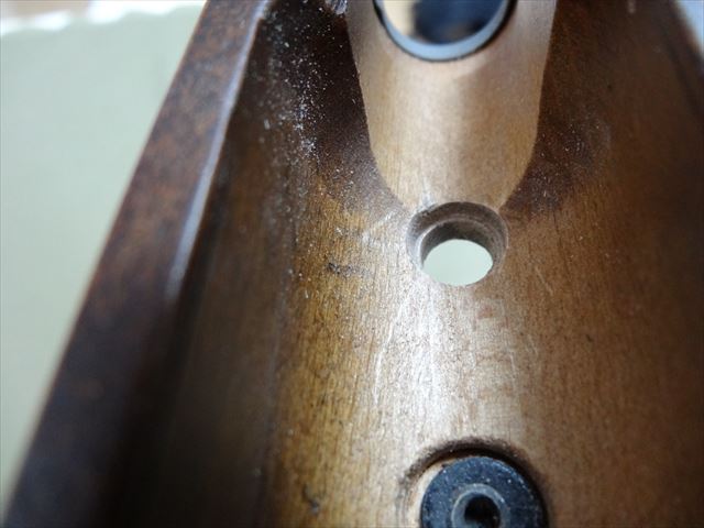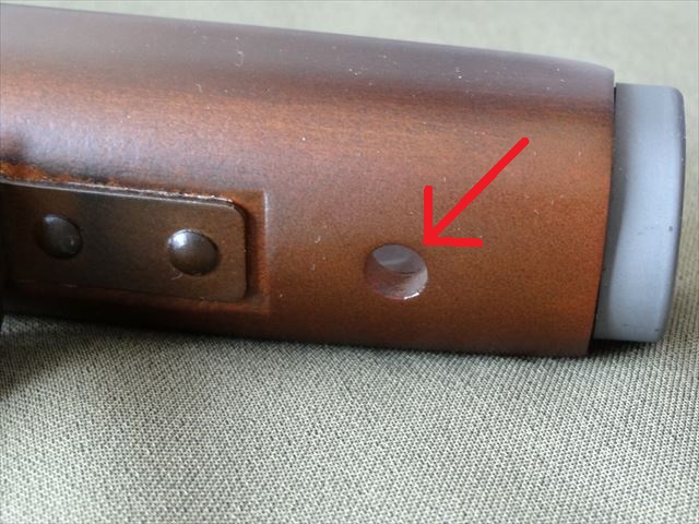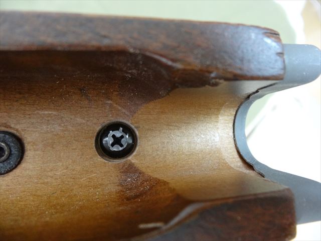 そのまま取り付けるとストックの内側にスクリューの頭が飛び出てしまい、バレルにあたってしまいます。