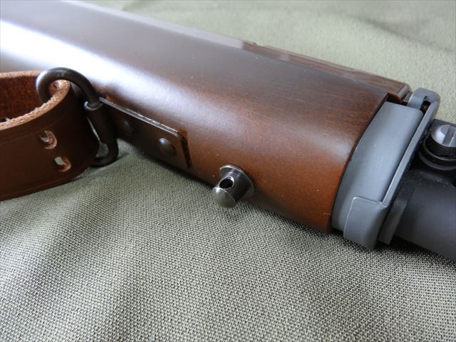 WEのM14は木製ストックに換装済みですが、バイポッド取付アダプタがついていません。
