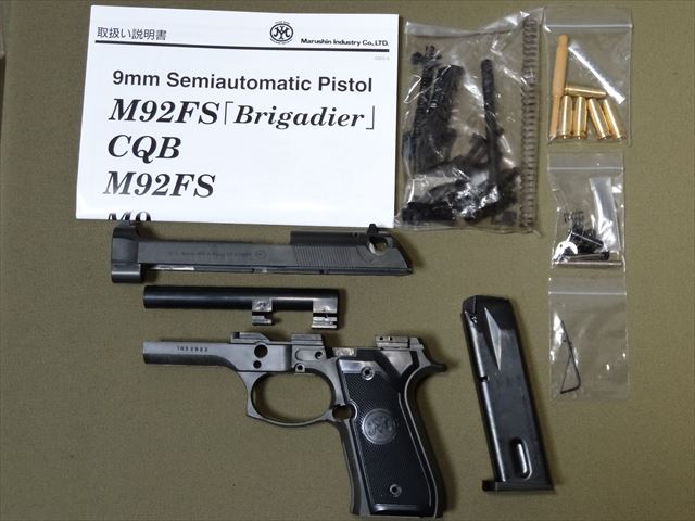 キット内容です。組立説明書はブリーガディア、CQB、M92FS、そしてM9と共通になっています。