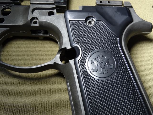 別途ベレッタマーク入りのグリップを用意しました。こちらは先に紹介した純正品とは違うものでお安い製品になります。