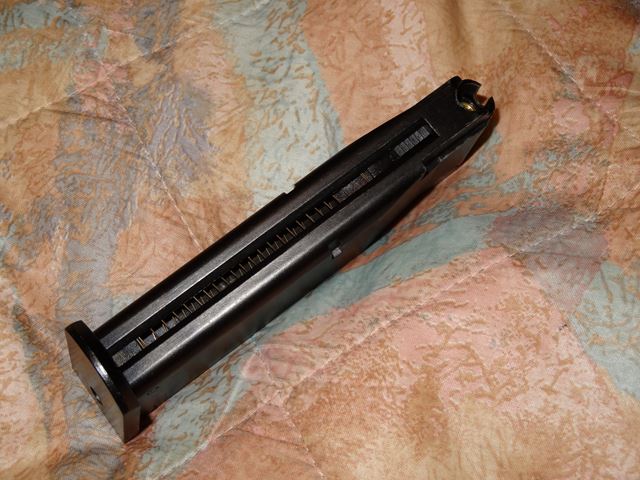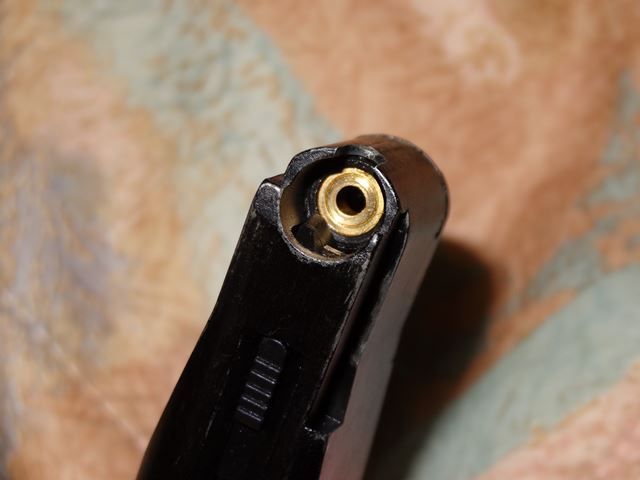 金色のヘッドキャップの中心にストライカーピンがあり、ハンマーに叩かれたストライカーピンがマガジンの後部にある放出バルブを作動させるという仕組みっぽいです。