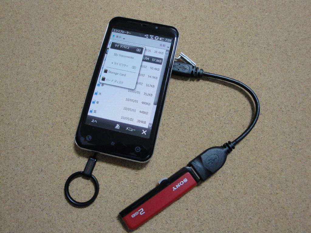 IS02のMicro USB端子はUSBホスト機能を持っています。そこで親機のPCに繋ぐだけでなくマウスやUSBメモリも接続可能なんです。