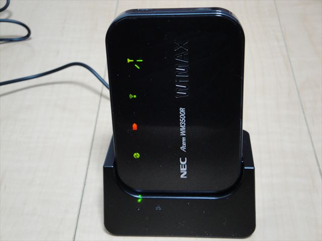 とりあえずここまでくればインターネットに接続することは可能ですが、パソコンとWM3500Rとは無線LANで接続するので,一気に無線LANの設定もやっちゃいましょう。「らくらく無線スタートEX」というアプリを付属のCD-ROMからPCにインストールし、それを使って設定します。簡単なようですがボタンを押すタイミングとかなかなかうまくいかず、何回かやり直して無事接続完了。こんなふうにランプがついています。